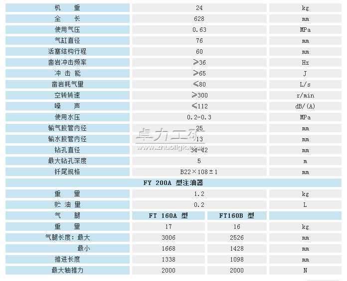 YT23鑿巖機(jī)技術(shù)參數(shù)表
