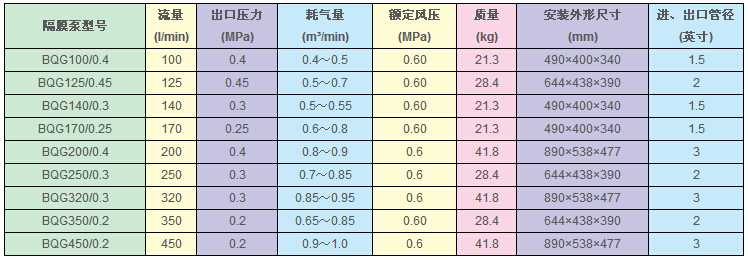 氣動隔膜泵特點氣動隔膜泵根據不同液體介質分別采用丁腈橡膠、氯丁橡膠、氟橡膠、聚四氟乙烯、聚四六乙烯。