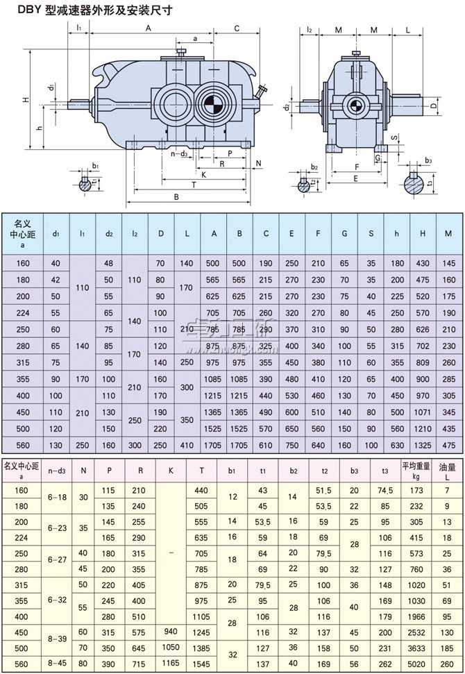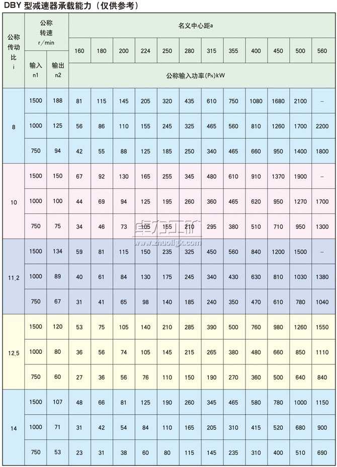 (1)DBY型為二級傳動,DCY型為三級傳動。DBY型和DCY型第一級傳動為格里森弧齒錐齒輪,第二、第三級傳動為漸開線圓柱斜齒輪。