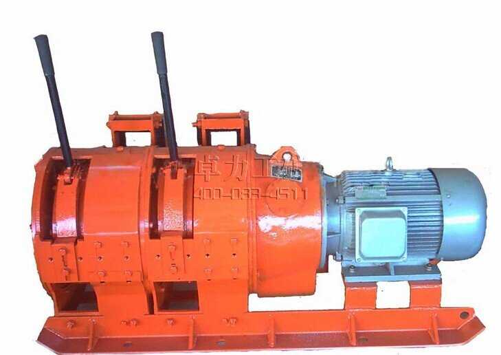 電耙子的主要部件有減速裝置,主卷筒,副卷筒,操縱裝置,鋼繩導(dǎo)向裝置和電動機。這些部件分別裝在殼體內(nèi)外,殼體是一個具有較好鋼性的部件,既起保護(hù),支撐作用,又承受全部載荷。它用螺栓固定在與基礎(chǔ)相連的二根滑道上。雙筒絞車有一個主卷筒(裝在右側(cè),即靠近電動機的一側(cè)),一個副卷筒(裝在左側(cè))。三筒絞車有一個主卷筒(裝在中間),二個副卷筒(裝在左邊和右邊),三筒絞車也可以裝二個主卷筒(裝在右側(cè)和中間),一個副卷筒(裝在左側(cè)),每一個卷筒都相應(yīng)有一個操縱裝和一個鋼繩導(dǎo)向裝置。