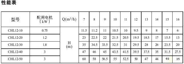 CHL12,CHLK12 輕型不銹鋼臥式多級離心泵性能參數(shù)表