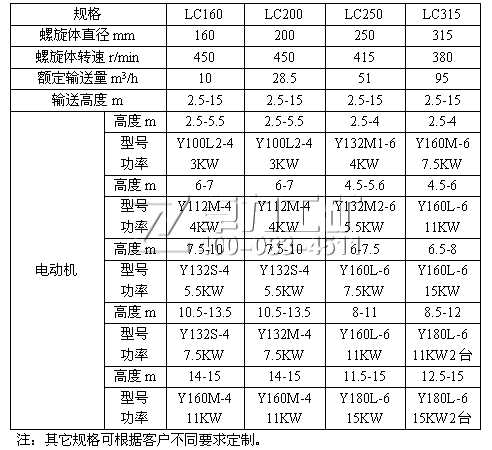 LC型垂直螺旋給料機(jī)技術(shù)參數(shù)