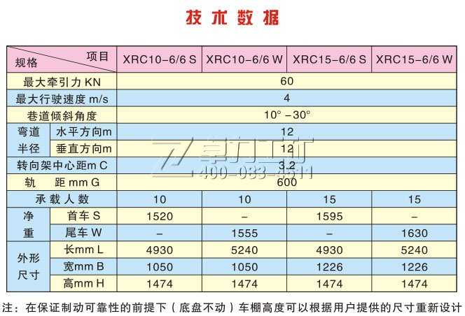 | XRC8型插軌式斜井人車主要技術參數 | ||||||||