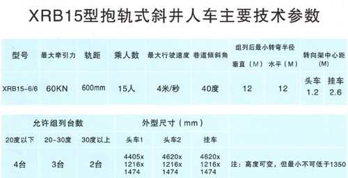 XRB15型抱軌式斜井人車(chē)技術(shù)參數(shù)
