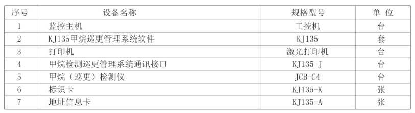 KJ135甲烷巡更系統主要由:計算機及巡更軟件、KJ135甲烷巡更系統通訊接口、KJ135-K型標識卡、KJ135-A型地址信息卡、JCB-C4型甲烷檢測儀組成。