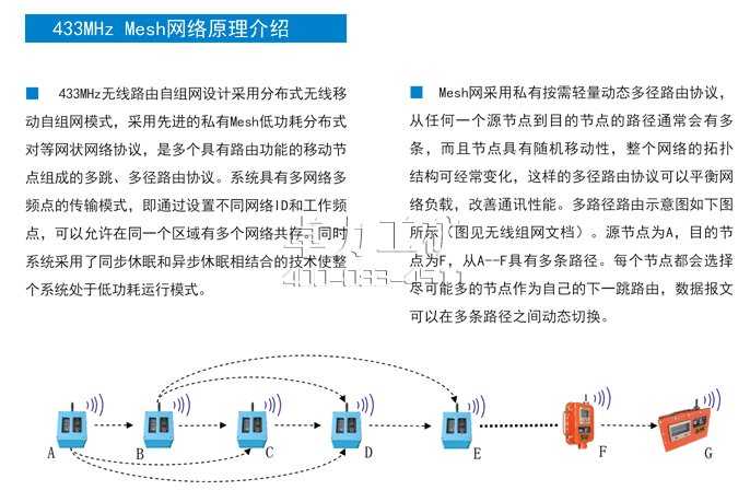 ■ 該系統采用國內首創的“433M無線路由自組網模式”。各傳感器節點采用的是一種完全分布式、對等的無線自組網;