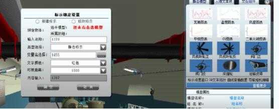 圖4 三維場景中的工作標牌、傳感器展示(傳感器上的有數據)