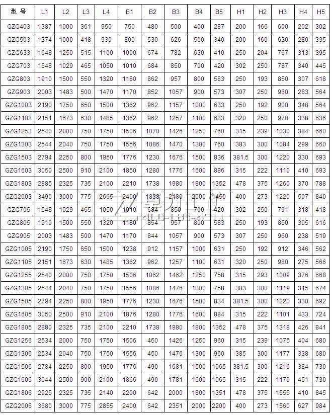 | GZG1255 | 1250×2000×315 | 270 | 100 | 6 | ZG625 | 2×3.84 | 2×1.5 | 1077 |