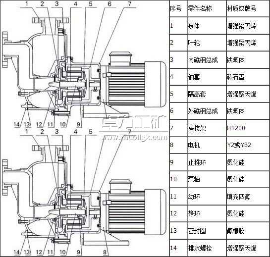 5、塑料自吸磁力泵長時間運行后,發現泵有異常情況(噪音大,震動加劇),應拆檢軸承和端面動環的磨損情況,若軸承和泵軸的間隙、葉輪軸向竄動較大時,應更換軸承和軸向動環。